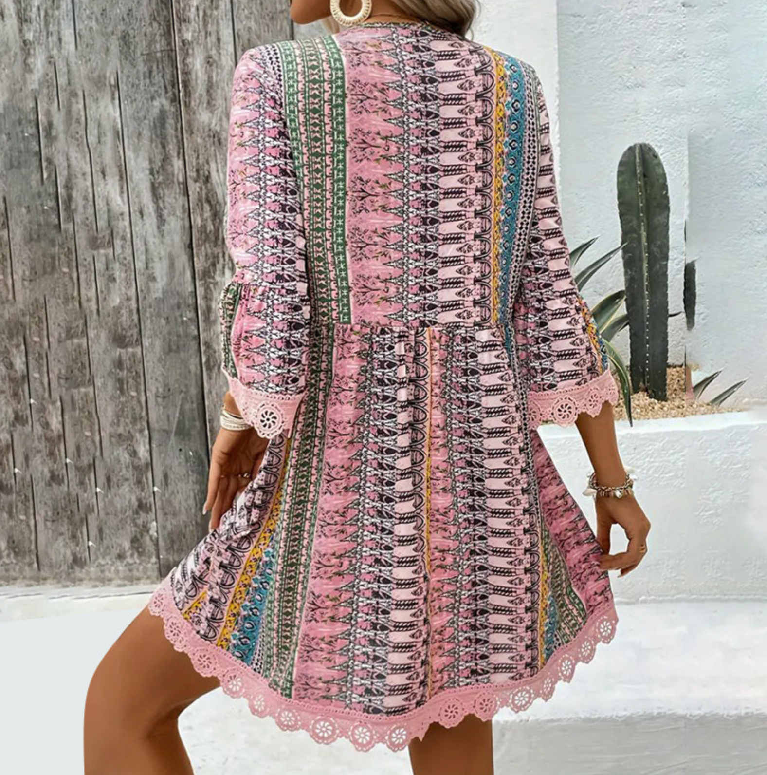 Boho sun. Sunset soul. A carefree celebration of color, the Ivanna Flare™  is your go-to for spontaneous getaways and sunlit strolls. This breezy A-line silhouette features tribal-inspired prints in warm, earthy reds and cool turquoise — kissed with delicate scalloped crochet trim.