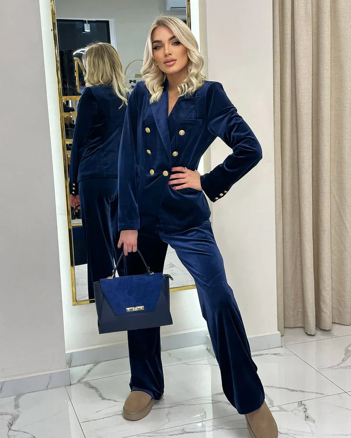 Træd ind i raffinementet med Kardi™ fløjlssæt, et luksuriøst fløjlssæt, der ubesværet blander stil og funktionalitet. Sættet er designet til den moderne trendsætter og består af en struktureret jakke og ultrabløde bukser, som giver en elegant løsning til de koldere årstider.