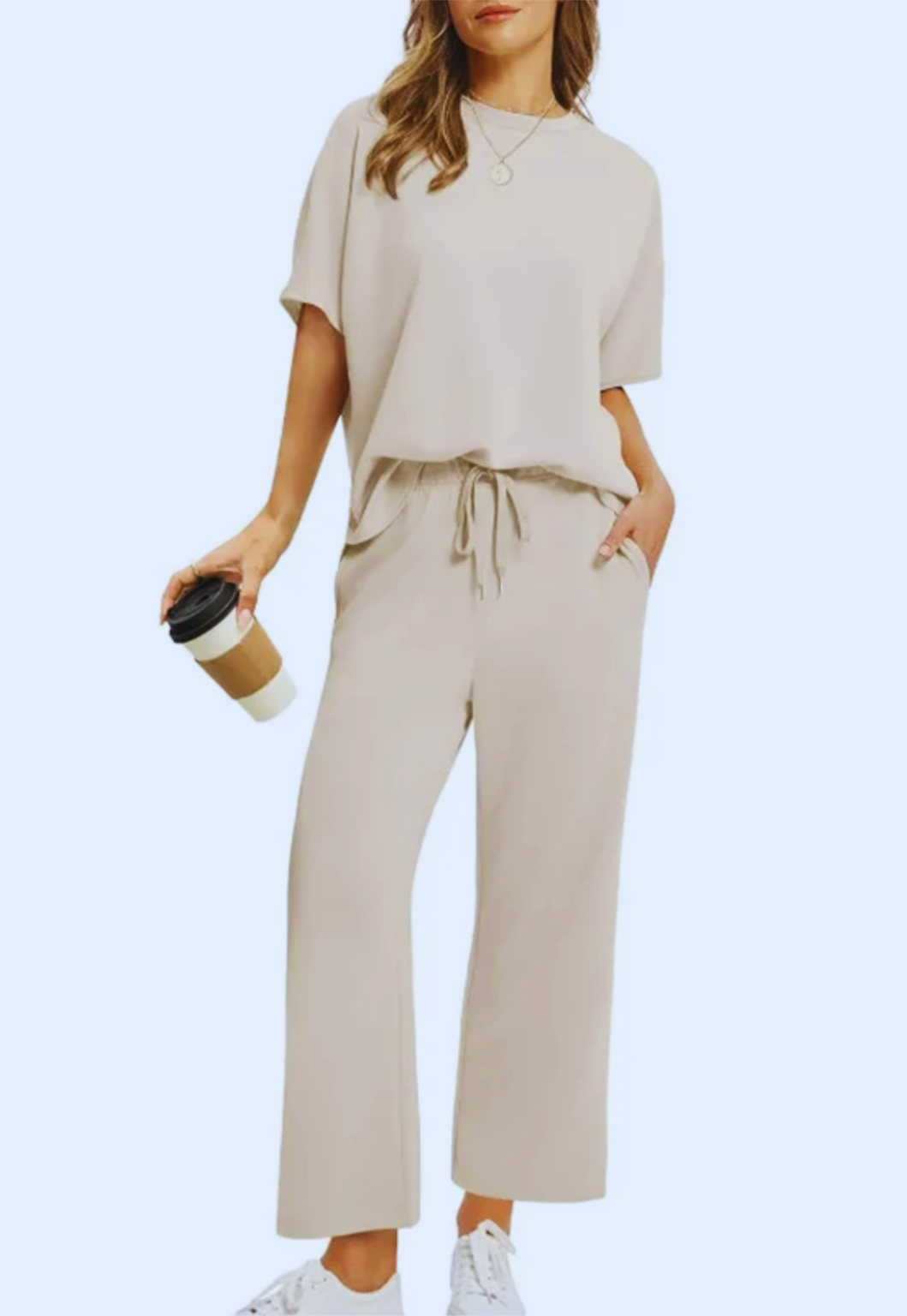 Chill mode, activated. The Maya Matching Set™ is your go-to for effortless comfort and cool-girl style. Featuring a soft, oversized top and relaxed drawstring pants, this minimal lounge set is perfect for slow mornings, coffee runs, or casual days on the move.